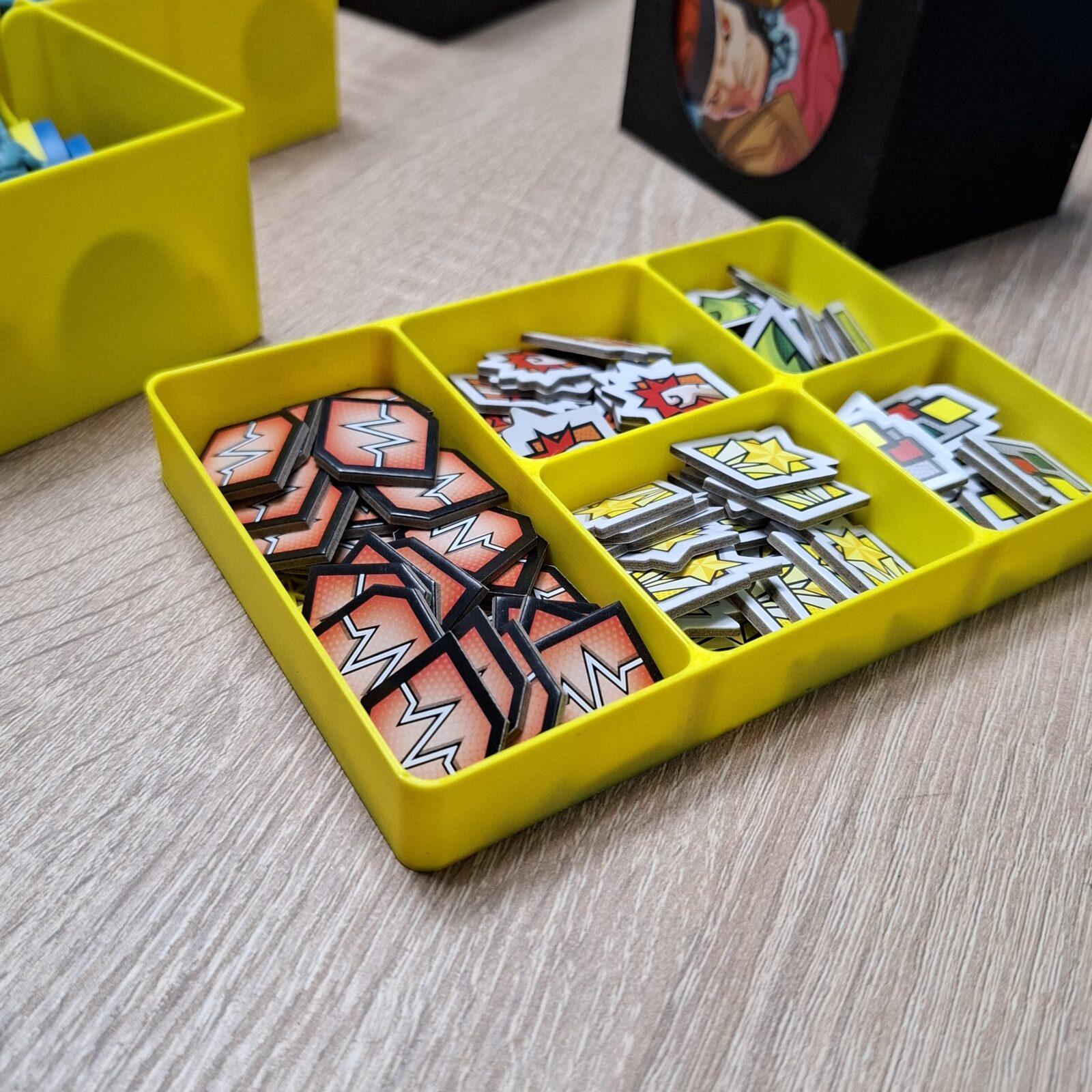 - Możliwość przechowywania gry w poziomie i w pionie – po zamknięciu wieka nic się nie wysypuje z pojemników